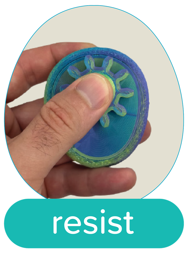 breath 2 - turn the base, so that the bottom of the base is facing up. Place your index finger and your middle finger on the bottom of the base and your thumb on the 'eko' logo. To keep the gear spinning continuously, blow on the side of the teeth where the teeth hits the bottom of the base, hold the base close to your mouth and blow gently let it spin. Try counting 1-2-3 when inhaling, then hold 1-2-3 and exhale 1-2-3, and repeat this until you start feeling relaxed and more present in the moment