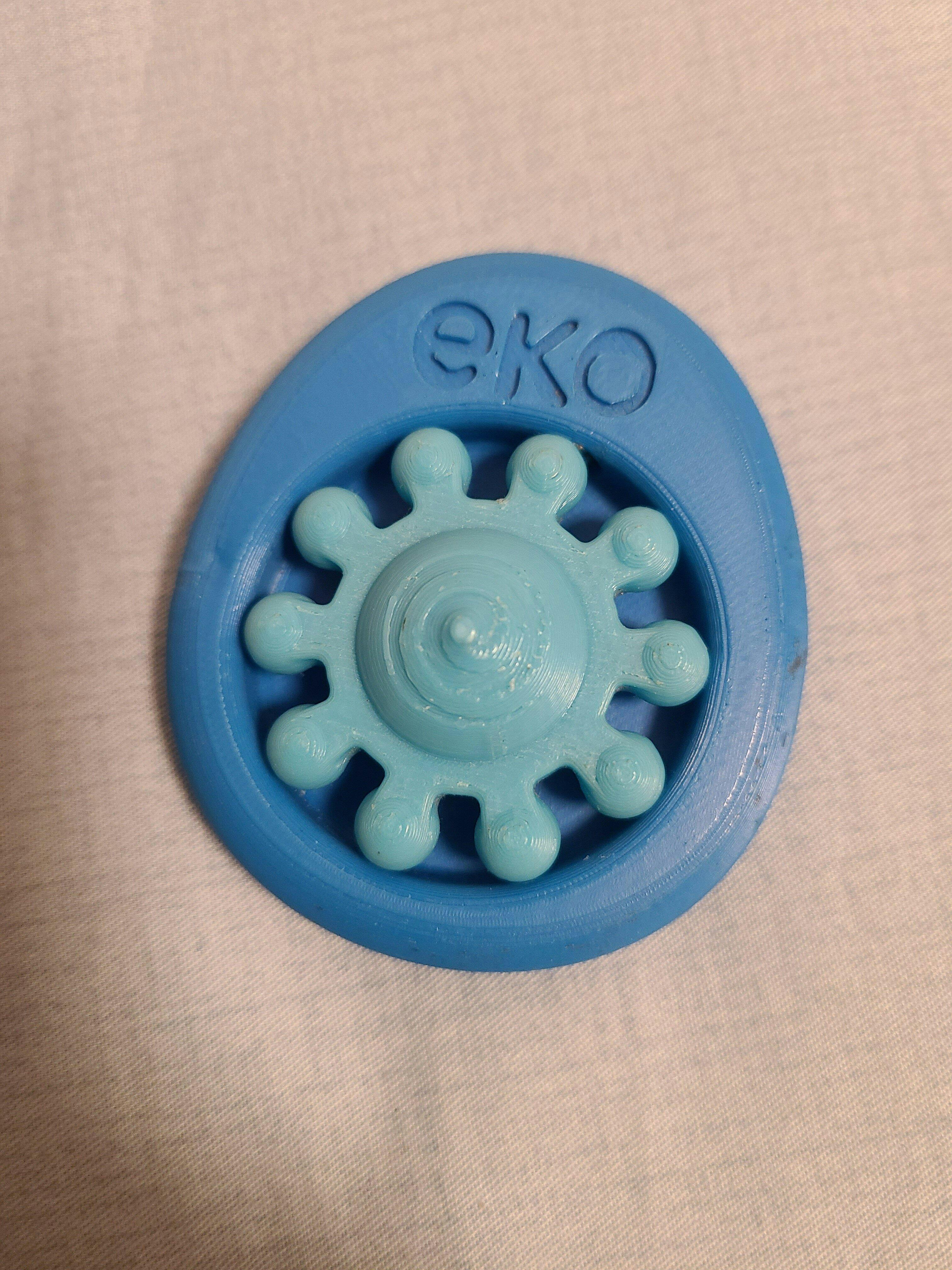 how to twirl - place the eko base in the palm of your hand with the word ‘eko’ facing downwards. Place the flat side of the gear on the bottom of the base. Start twirling!