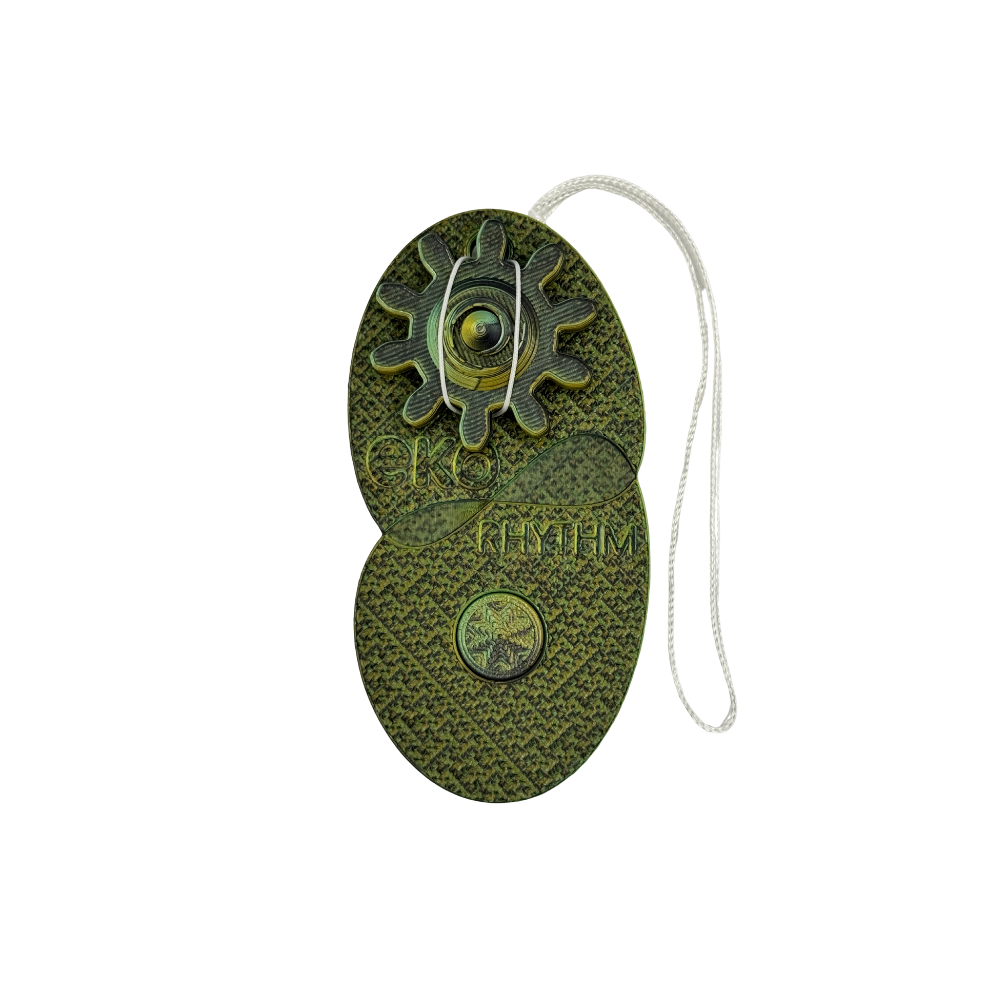 all the eko’s are 3D printed locally on the Sunshine Coast made of a bio-degradable material such as sugar cane and corn starch. it comes with an Eko base and one interchangeable gear.